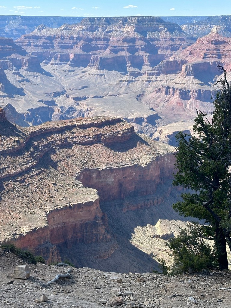 After getting some pictures here, we got on the blue shuttle bus and went to the Hermits Rest Route Transfer stop. We did part of the Bright Angel Trail.