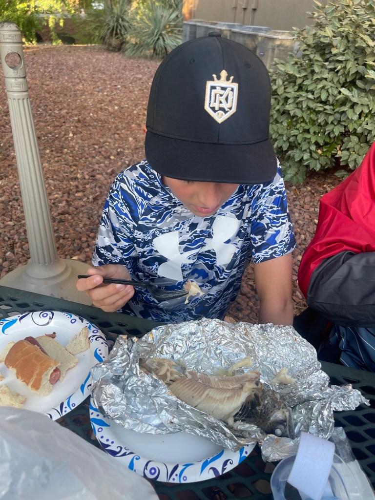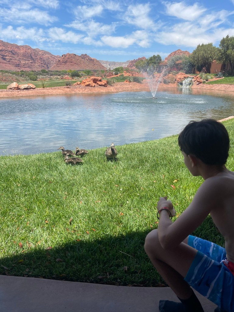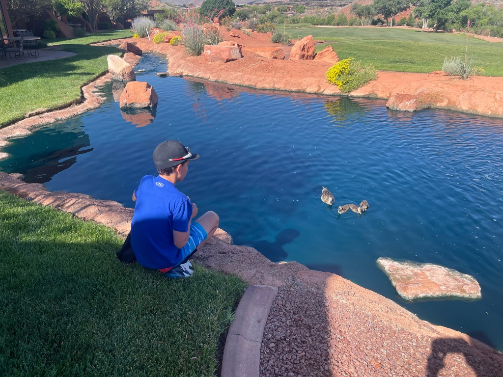 After our hike, we had lunch at the Outlaw Grille in Uptown Sedona. It was great! I loved the sweet potato fries 😋 After lunch, we went to the Rainbow Trout Farm to let Griffin fish. Fishing is only $1.50/person, and then you pay for the fish you catch (they will clean them for you). He caught two, and we took them with us and grilled them for supper. That worked out perfectly because we had already planned to swim at the hotel and grill hot dogs that night.