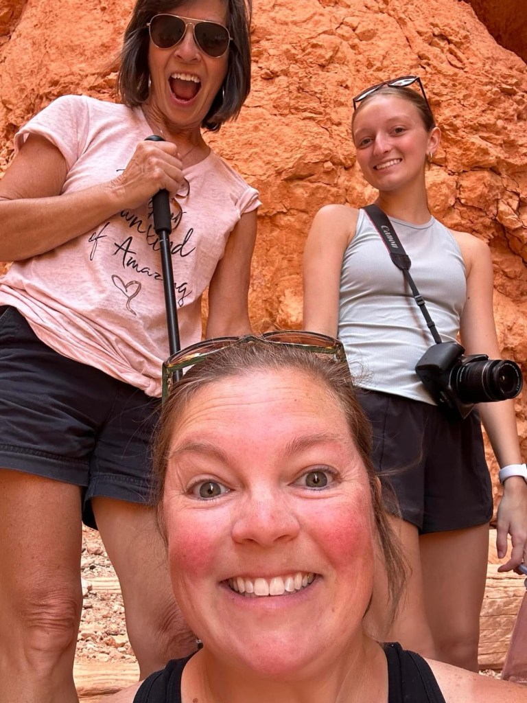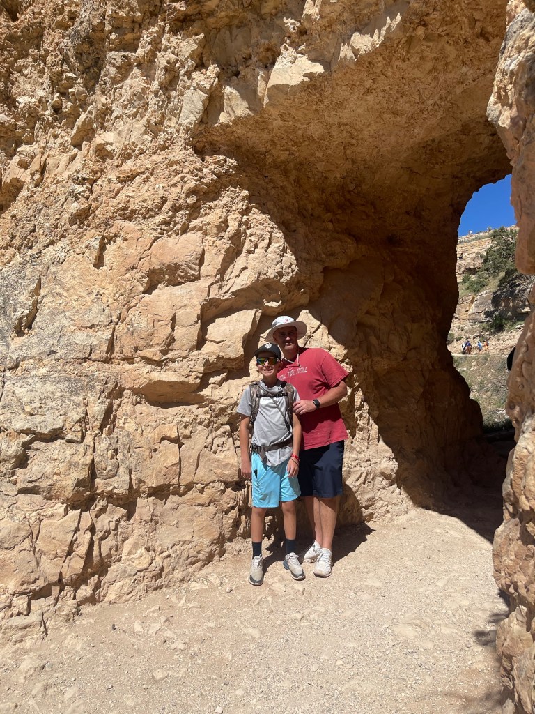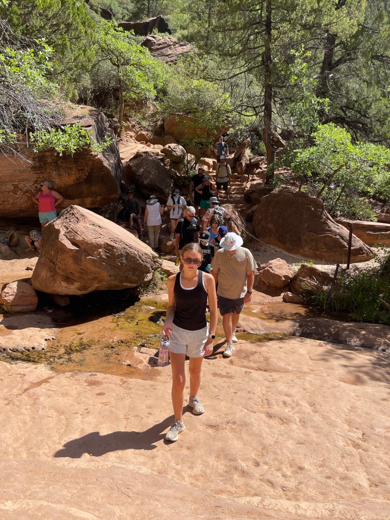 Bring an insulated, refillable water bottle. Yes, they are heavier than a plastic one, but they will keep ice frozen/water cold much longer. You will drink a LOT of water on this trip. Our kids both took a hydration backpack, which has a tube that allows you to easily drink water without having to worry about a water bottle, but they didn’t use them after the first day – because, who wants to drink hot water? 😬 I don’t know of a way you could keep the water cold.