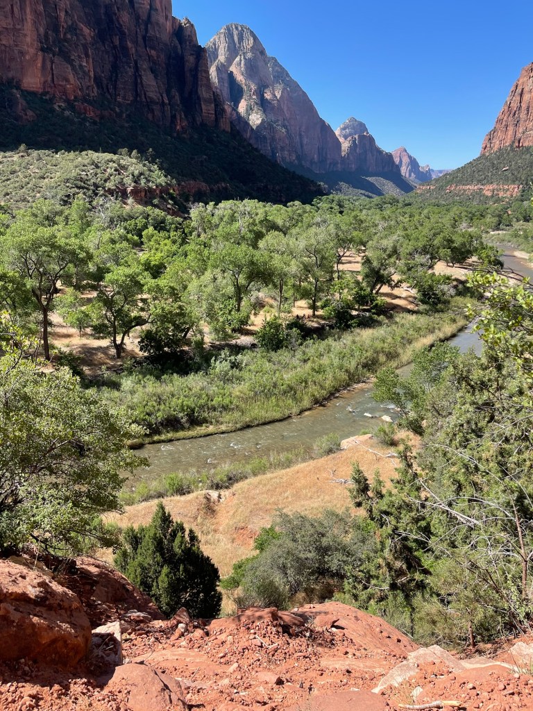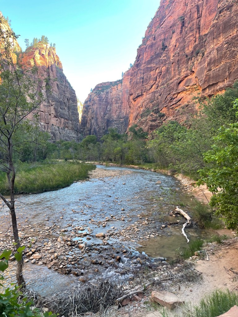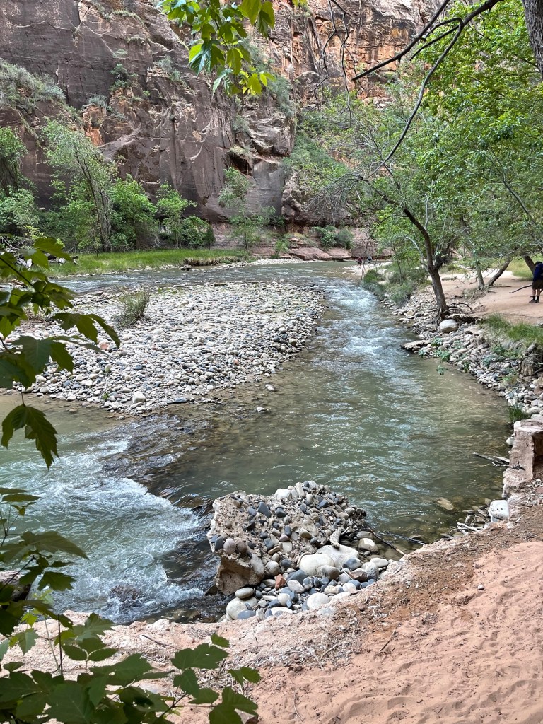 We were able to leave our vehicle at the hotel this morning, and we headed out at 7:15 am. We took the Springdale Shuttle to the Zion National Park visitors center. Then we took the Zion Shuttle to the last stop (#9) and walked the Riverside Walk. It was so pretty 😌 There are several places to stop along the way and take pictures by the river.
