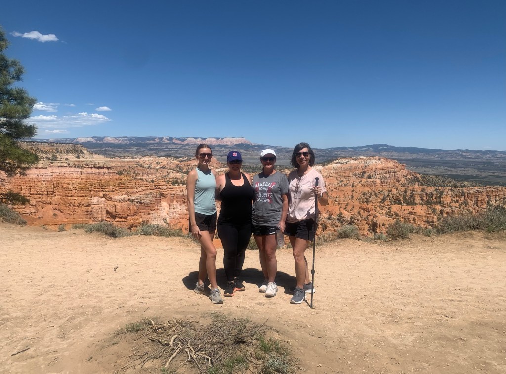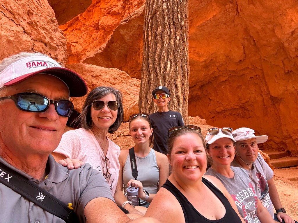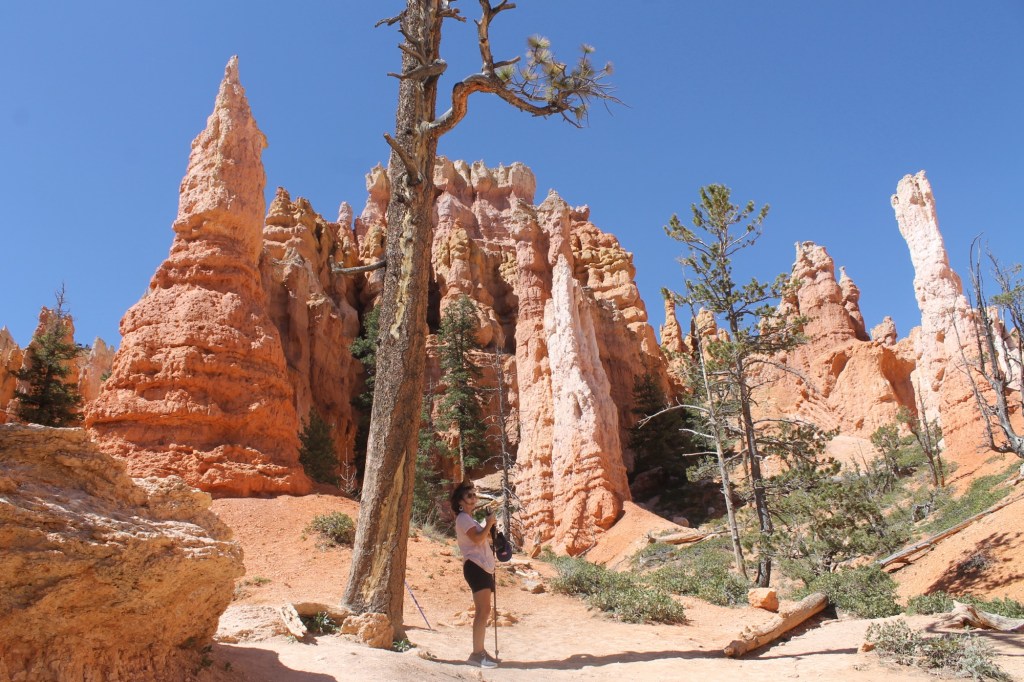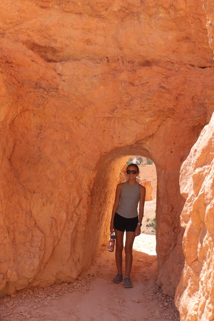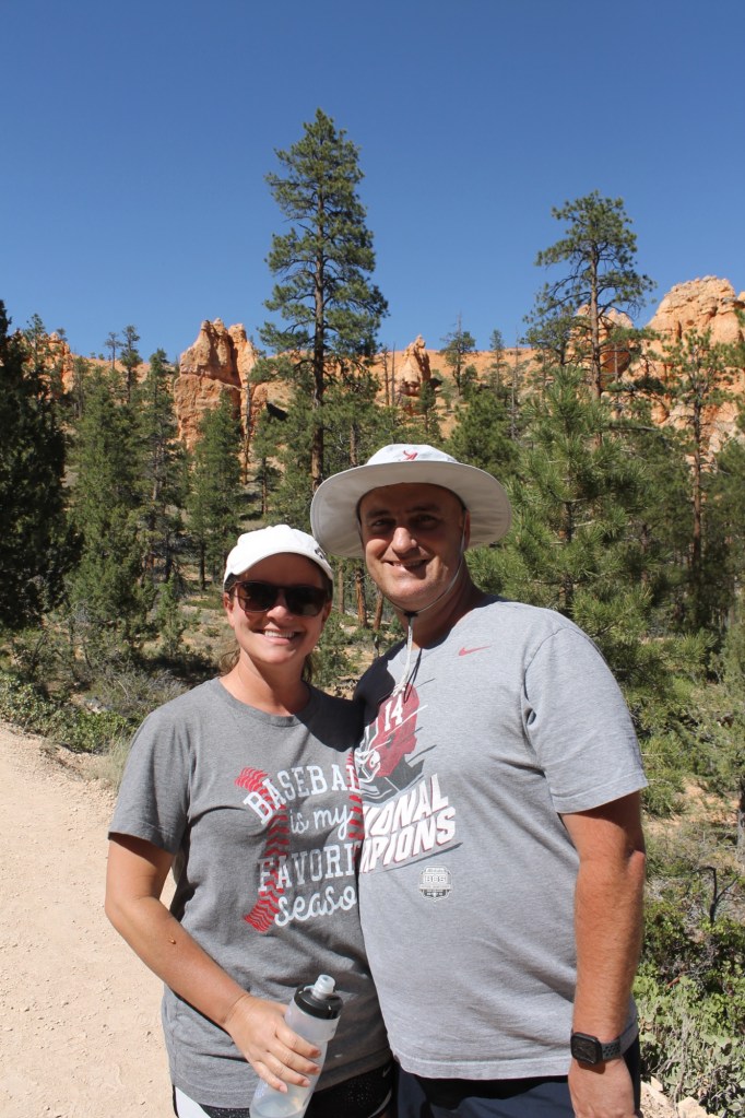 The main hike we wanted to do in Bryce Canyon NP was the Queen’s Garden/Navajo Loop hike. We started at Sunrise Point, walked to Sunset Point on the Rim Trail, and descended into the canyon on the Queens Garden Trail. We ascended on the Navajo Loop via Wall Street. Whew, what a hike!😰 It was the toughest one we did all week. It is a must-do because it is amazing to see the hoodoos and the Douglas Fir trees from the canyon floor, but the ending will have you huffing & puffing! And make sure you take lots of water with you! It’s 2.9 miles total, and it’s a dusty/dirty trail. We had dirt all over the back of our legs & in our socks & shoes. Here’s a link with good info about this hike:
