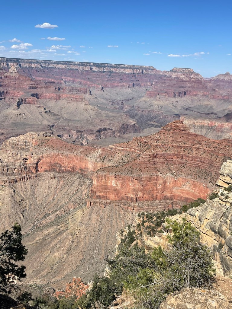 After about 45 more minutes, we stopped at Burger King for lunch. It was the only food place around😳 When we left Sedona, we put “Grand Canyon Visitors Center” in our gps. We would of course be seeing it from the South Rim. Our first view of the Grand Canyon was at Mather Point. We could begin to see how grand it really is! Our photos do not do it justice. We said it almost doesn’t look real; it looks like a painting.